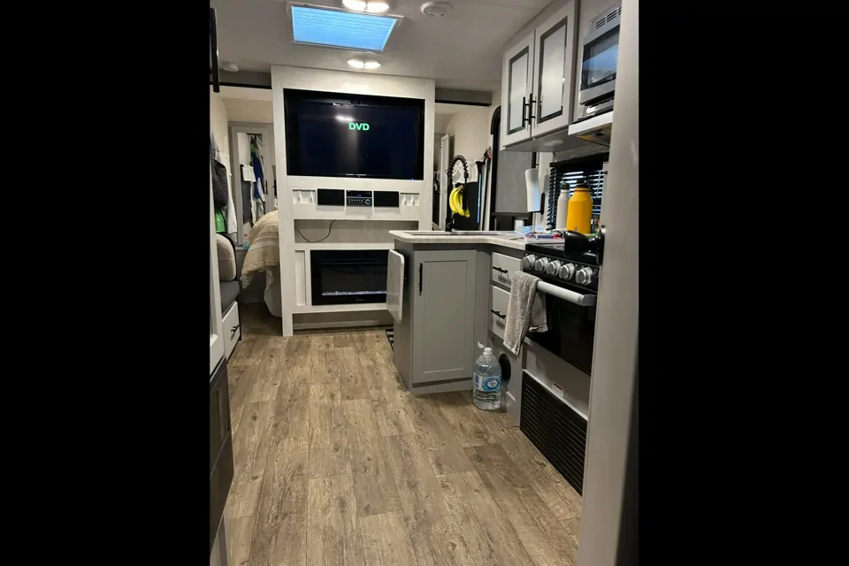 Whether you're on a work assignment or need a temporary home, the Vibe 24DB offers a stylish and cozy retreat with all the comforts of home. This modern travel trailer features a queen-size bed, spacious double bunks, a full kitchen, dinette, and bathroom – perfect for couples, small families, or solo adventurers. With thoughtful touches like indoor/outdoor speakers, USB ports, and plenty of storage, you’ll enjoy every moment, whether you're parked under the stars or in the city.