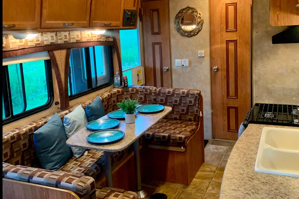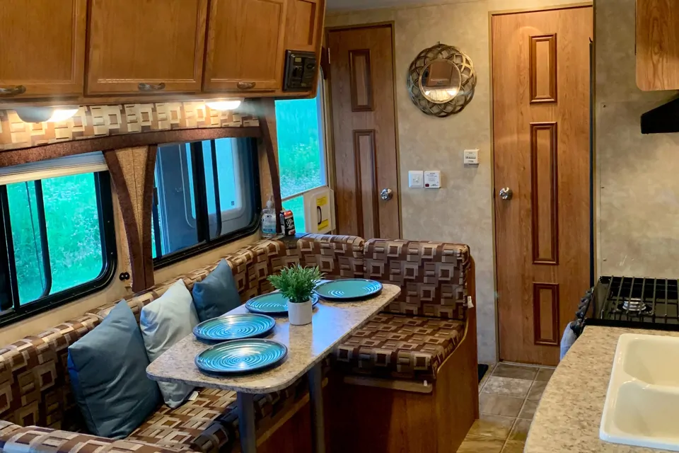 Bienvenue dans le blue oasis, cette charmante roulotte de 24 pied ultra légère est complètement équipée. Idéal pour couple ou petite famille. Profitez de votre été en vacances dans le confort douillet de cette charmante roulotte. 1 grand lit queen à la chambre dés maître et une table qui se convertit en lit double. Cuisine complète poêle,four,micro ondes et évier double.Grande banquette en U. Salle de bain avec bain douche. Le
