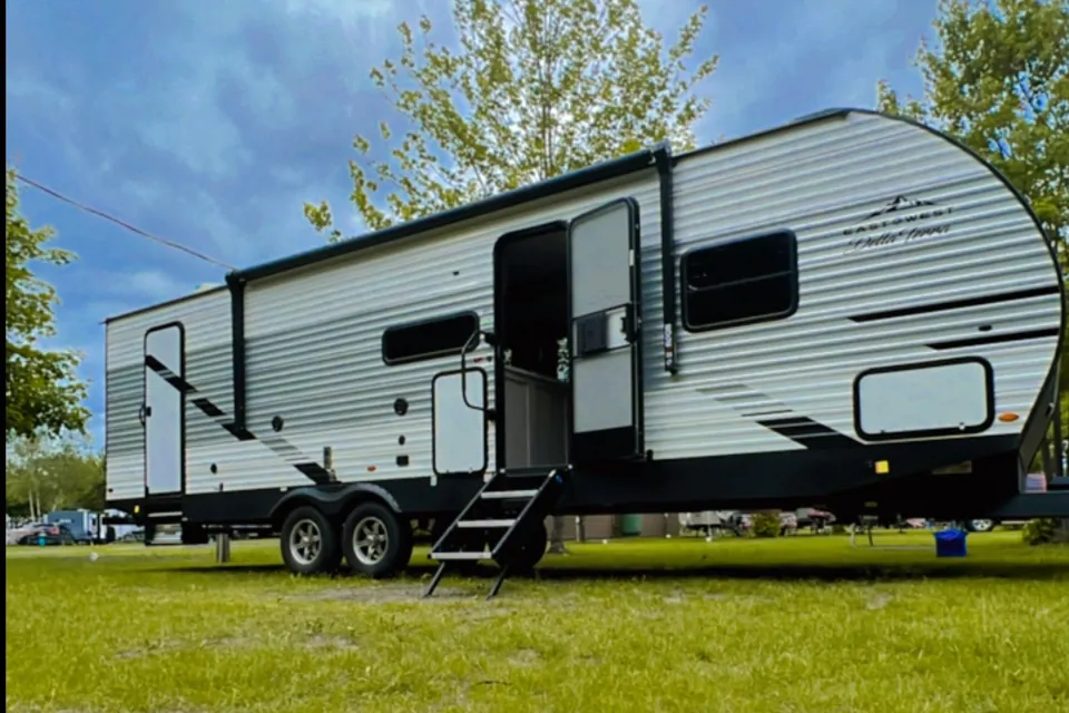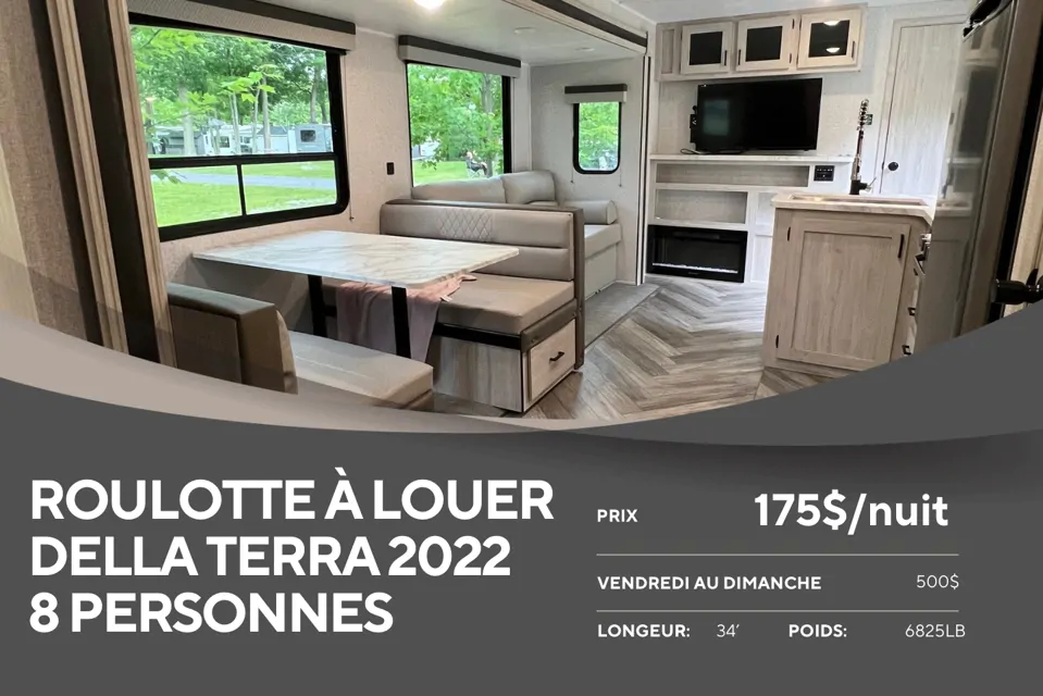 Roulotte neuve 2022 34pied, couche 8 personnes confortablement! Elle est très bien équipée, spacieuse et très moderne.