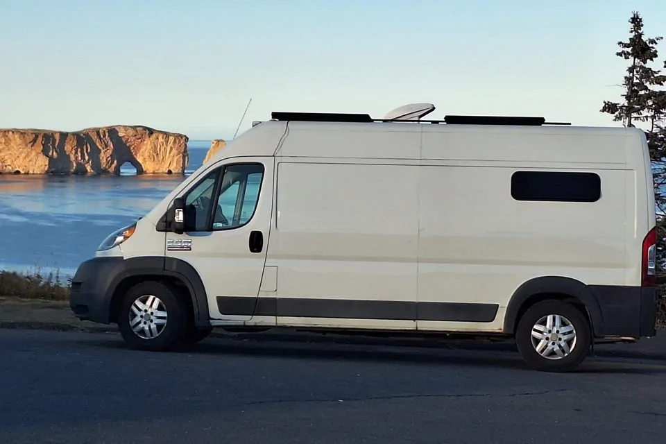 Entirely autonomous with a water and an electrical system (no propane). No need to book expansive camping spots. It charges on it’s own while driving with the alternator or with the solar panels. You just need to fill up the large fresh water tank about once a week and you are good to go. It also has a large gray water tank and a easy to manage composting toilet.