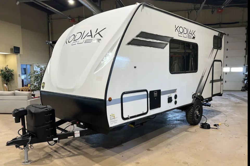 Kodiak Cub 175BH , la parfaite petite familiale , seulement 3500 livres , pour du plaisir sans tracas. Peut accueillir jusqu’à 5 personnes ( 2 adultes , 3 enfants ) . Grand coffre de rangement , auvent et stabilisateurs électriques.