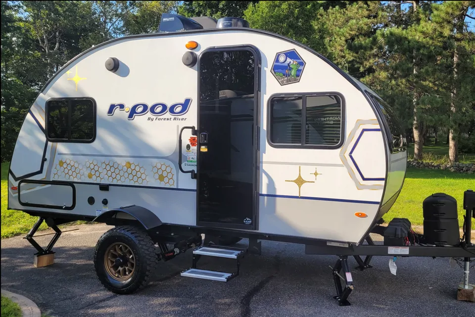 Belle petite roulotte de voyage possédant toutes les commodités nécessaire dans une grandeur et un poids minimum. A un peu moins de 2800 lbs elle peut êrte tiré par la plupart des SUV. Soyez les deuxième a l'utiliser...er oui elle a déja été louer une fois cette année!!!. Tout est inclus vous n'avez qu'a apporté vos effet personnel et votre nourriture. Peu accommoder 2 adultes et 2 jeunes enfants.