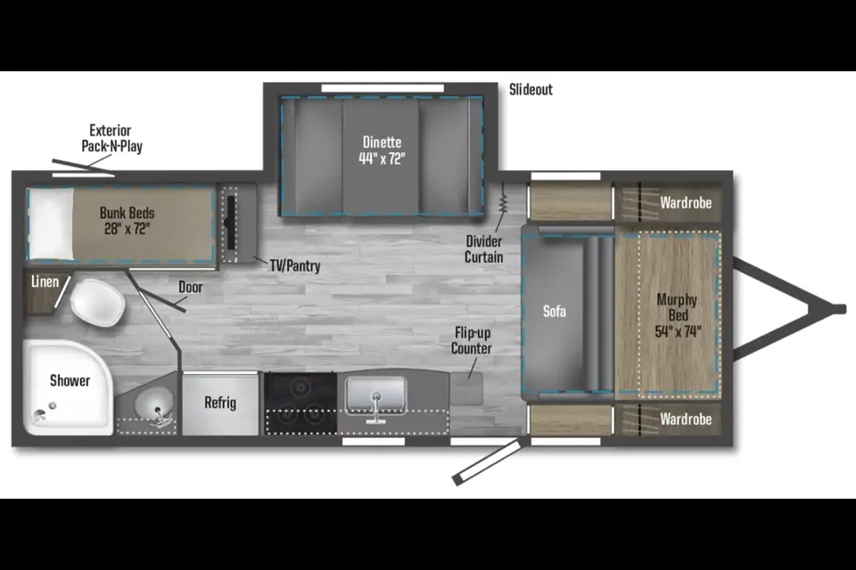 Parfaite pour une famille de 5, Minnie Winnie vous offre tout le confort de la maison, au cœur de la nature. Profitez de chaque escapade grâce à ses commodités complètes, ses espaces de vie bien pensés et ses lits superposés conçus spécialement pour les plus petits (5 pieds et moins).