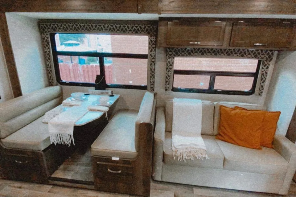 Accessoires de cuisine, vaisselle, casseroles, ustensiles, four micro-onde, réfrigérateur, grille-pain, cafetière, cuisinière avec four, couvre-matelas, papier de toilettes, téléviseurs, système de chauffage et climatisation, génératrice, tout le nécessaire pour le branchement électrique/eau/égout, caméra de recul et plus encore!