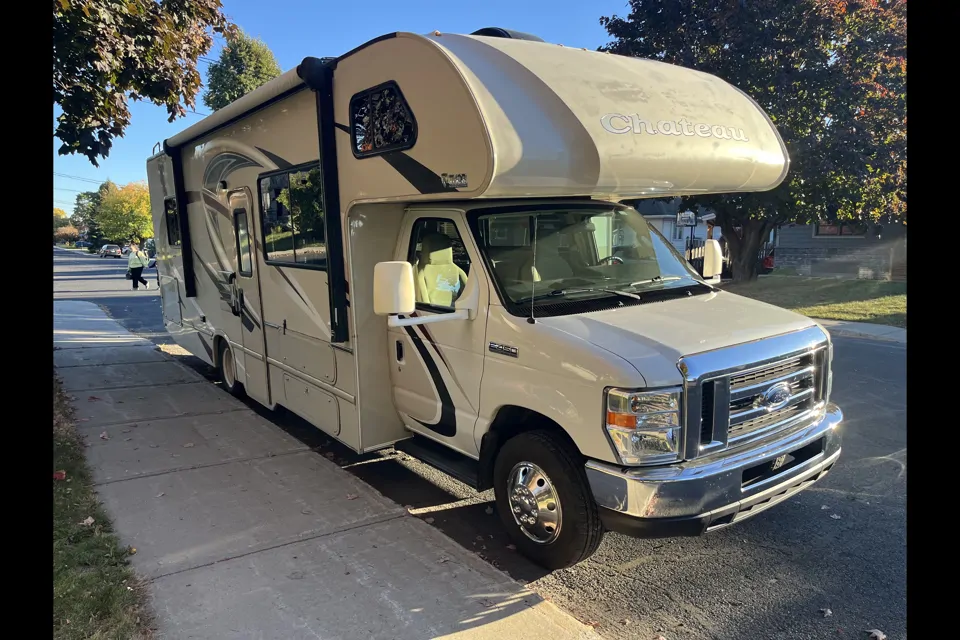 Experience a smooth ride to each destination with the Thor Motor Coach Chateau Class C gas motorhomes! Ford E-450 chassis includes an 8,000 lb. trailer hitch to bring the family car along. They are constructed with a welded tubular aluminum roof, sidewall cage construction, vacu-bond laminated roof, walls, and floor with block foam insulation to keep the heat and air conditioning inside. The slick fiberglass exterior with graphics package and black framed windows are sure to turn heads down the highway too. Inside, you'll be met with residential vinyl flooring, window privacy shades on select models, a power bath vent, and pressed laminate kitchen countertops. There is even a water heater for hot showers, a 4.0 kw gas generator to keep you going, and solar prep for off-grid capabilities!