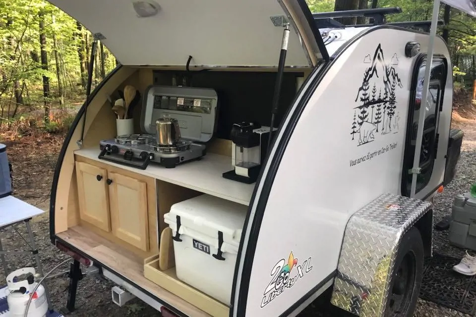 - Martin B.août 2024Première expérience en « teardrop » et nous avons beaucoup apprécié. La roulotte est confortable et en bonne condition. C'était également notre première location via RVezy et tout s'est bien déroulé. Daniel est vraiment super ; accueillant, ouvert, flexible au niveau des horaires et des communications simples. On a vraiment apprécié l’expérience sur toute la ligne !