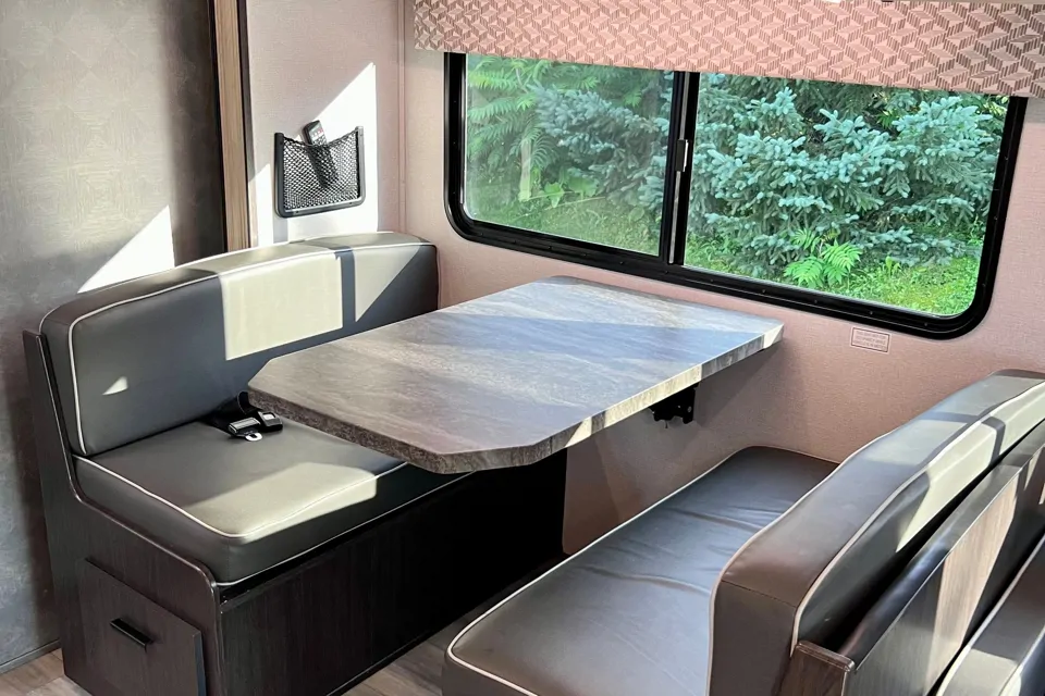 The RV is new and very clean. Maxime is a great host, super friendly and understanding when we were a little late to return it. Would definitely rent this RV again. I particularly liked the layout of the bathroom since it can be made into a very spacious bathroom which is rare in an RV. Great experience!