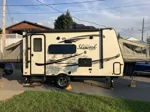 Cette belle roulotte hybride de 17 pieds , peut être remorqué avec un VUS avec une capacité de remorquage de 5000 lbs .