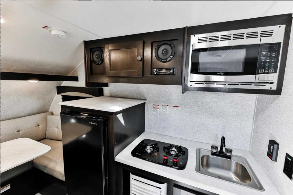 Roulotte neuve, parfait pour les jeunes familles. Très légère, pratiquement tous les VUS peuvent la remorquer. Confortable et bien divisée. Il n'y a rien d'inclut dans la roulette, vous devez apporter vos items personnels (literie, vaisselle, chaises de camping, papier de toilette, etc)