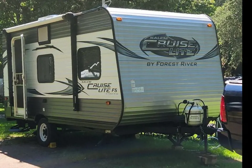 Une roulotte légère qui a servi tant en Alberta qu'à Myrtle Beach, en passant par Virginia Beach et plusieurs campings au Québec.