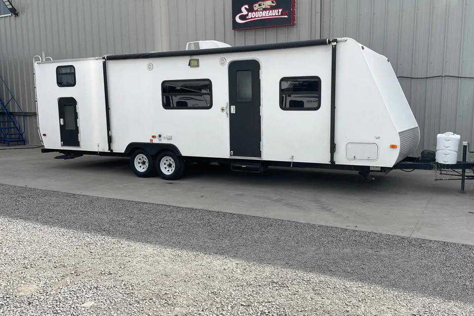 Cette grande roulotte légère a tout ce qu'il faut pour partir avec la grande famille en pleine autonomie! Elle ne pèse que 4900lbs!