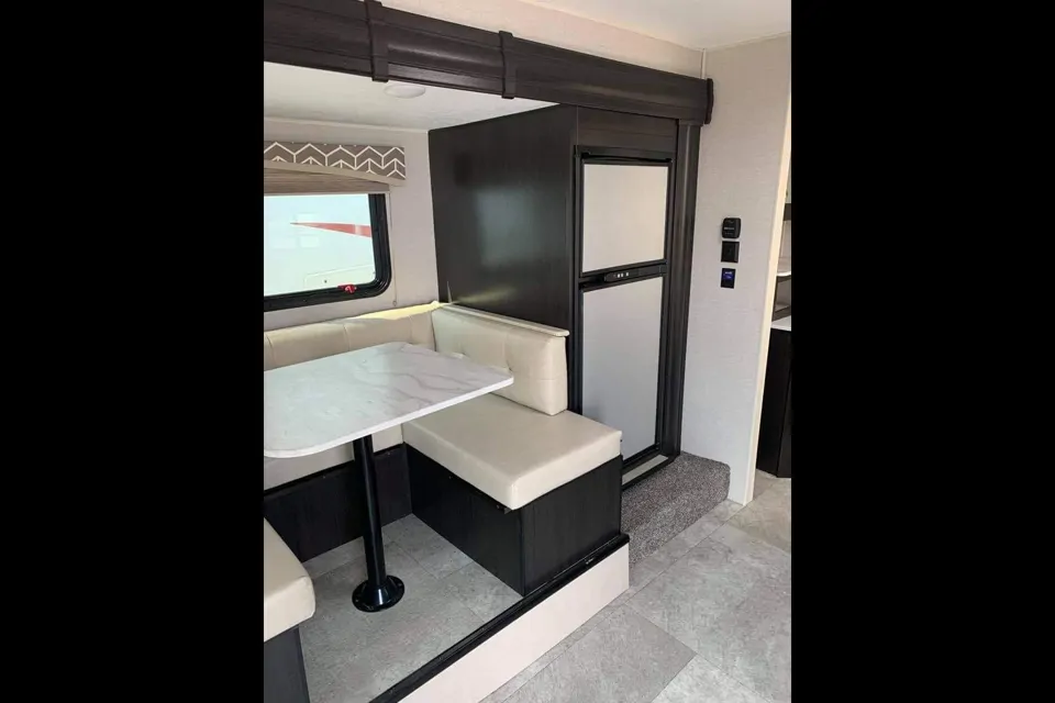 Côté confort, vous adorerez la grande banquette en U pour vos soirées et l'immense auvent électrique de 17 pieds avec éclairage DEL pour vos apéros sous les étoiles. ✨ Facile à remorquer avec ses 5 200 lb (poids de l'attelage de 510 lb / boule 2 5/16"), elle est tout équipée pour vous offrir une expérience clé en main. 🚐💨