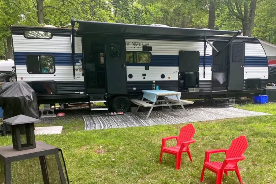 🌲 Forest River Cherokee Grey Wolf 27DBH – Confort et nature 🌲Profitez d’une escapade inoubliable dans cette magnifique roulotte, parfaite pour les familles ou les groupes souhaitant allier confort et plein air. Pouvant accueillir jusqu’à 8 même personne comprend des lits superposés doubles, une dinette en U idéale pour les repas et les soirées jeux, ainsi qu’une chambre privée offrant tranquillité et intimité. La cuisine extérieure vous permet de cuisiner et de profiter pleinement de vos journées à l’extérieur.Spacieuse, bien équipée et chaleureuse, cette roulotte est l’endroit parfait pour créer de beaux souvenirs, que ce soit pour un week-end ou un séjour prolongé en camping.