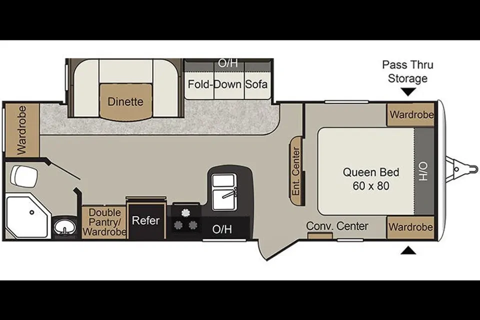 • Configuration : Comprend une chambre principale fermée avec lit king et une extension (slide-out) dans la zone de vie pour agrandir l'espace.