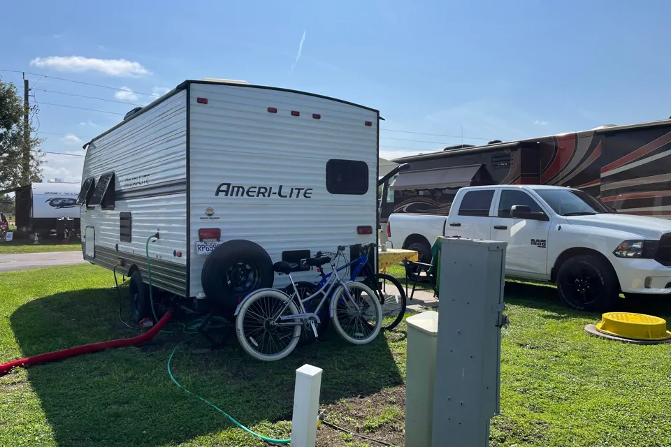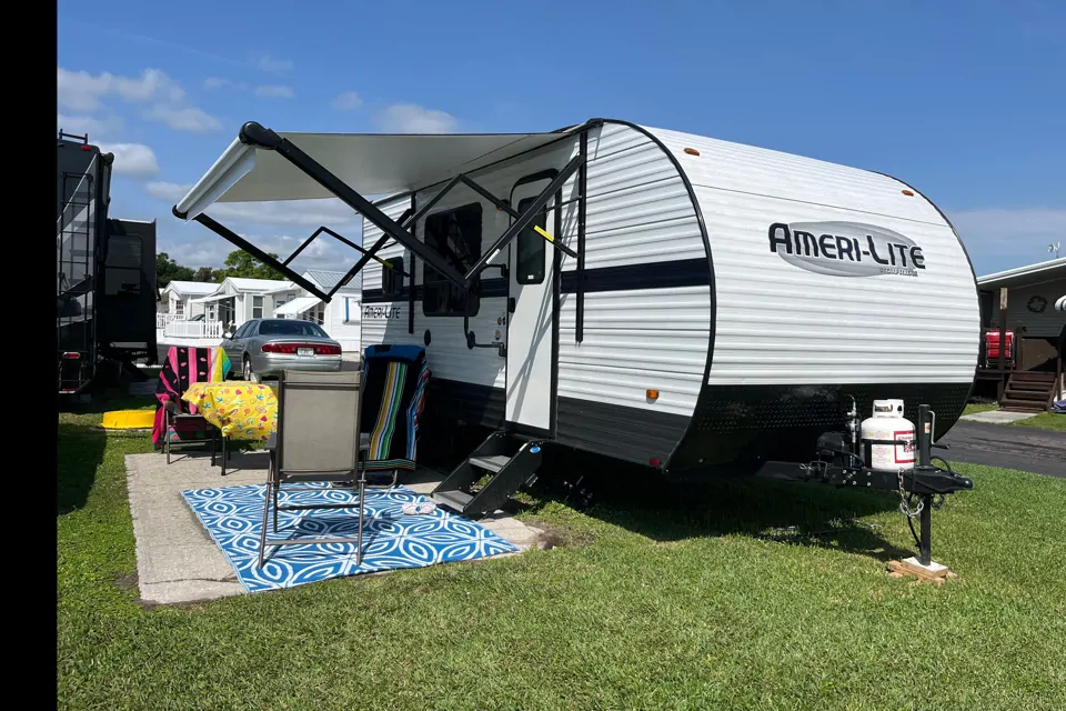 Petite roulotte bien aménager parfait pour couple avec 1 enfant . Nous sommes présentement en Floride avec .Pas de location moins de 1 semaine . Petit chien non allergène accepter viens toute équiper air fryer ,cafetière,toaster vaisselle ,table extérieur chaise, literie, attache remorque avec bare anti swing de qualité .Elle est neuve donc nous voulons discuter ou rencontrer les locateurs avant la location. Possibilités de louer à long terme pour grand voyage nous sommes à st jean sur le Richelieu elle sera disponible à partir du 1 avril 1-438-399-7139