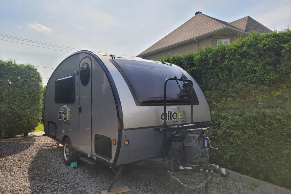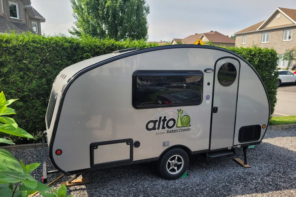 Notre roulotte Safari Condo modèle Alto F1743, communément appelée la petite bulle de confort, est maintenant à louer! C'est une roulotte québécoise haut de gamme, toute équipée et pleinement autonome (avec panneaux solaires et propane) qui est si légère (toute en aluminium) qu'elle peut être remorquée par tous les VUS!