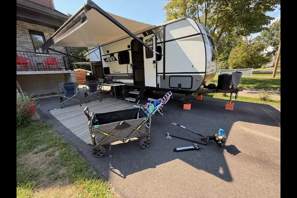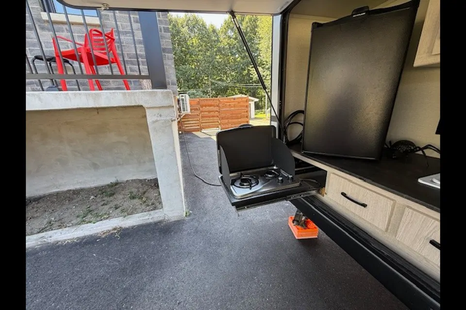 Perfect RV for couples or family with children. The RV has a full queen size bed with comfortable memory foam mattress. The u-shaped dinette can easily seat 4-6 people and converts to a double bed that can comfortably hold 2 adults easily or children. Very easy to tow and lots of storage. RV is equipped with dishes, cooking utensils, BBQ and outdoor kitchen that has a fridge, sink and outdoor stove top. Linens and towels are provided as well. We have taken exceptional care of our RV and expect that clients show the same respect so that others can also enjoy it as well on their adventures.