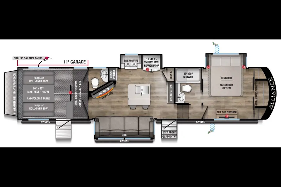 This 2022 Alliance Valor 36V11 is the perfect combination of luxury, comfort, and adventure. Whether you’re traveling with family, friends, or toys, this fifth wheel has everything you need for an unforgettable getaway.