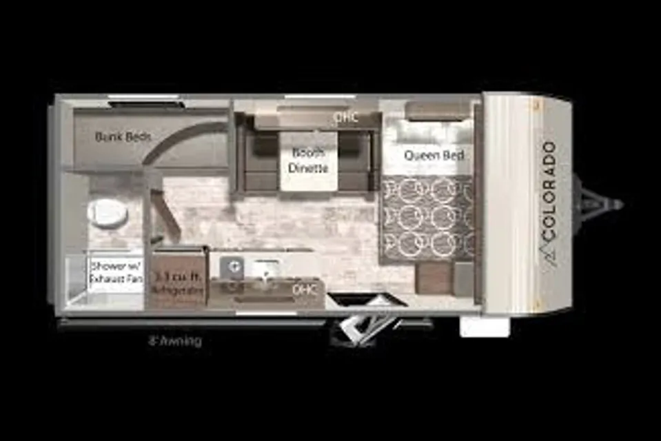 This lightweight and easy-to-tow travel trailer is perfect for couples or small families, comfortably sleeping up to 5. At just 21 ft 5 in long with a dry weight of 3,100 lbs and 399 lb hitch weight, it’s ideal for SUVs and smaller trucks. Inside, enjoy a practical layout with a 3.3 cu. ft. 12V refrigerator, 2-burner cooktop, and on-demand tankless water heater for continuous hot water. Stay comfortable in all seasons with an 8,000 BTU A/C and 20,000 BTU furnace. This camper includes a standard shower, power awning, and solid tank capacities (21 gal fresh / 28 gal grey / 28 gal black) for weekend trips or longer stays. It also features 30-amp service and a 20 lb LP tank. Compact, efficient, and simple to set up—this camper is a great choice for state parks, weekend getaways, and first-time RV renters.