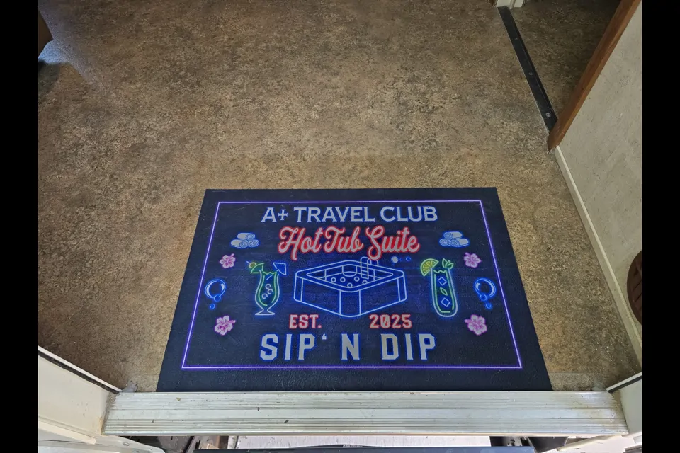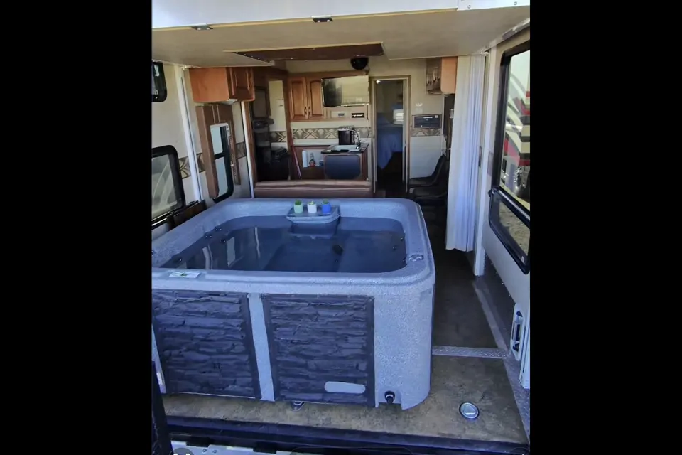 Absolutely! My RV camper features a full-size residential hot tub, a fenced-in porch with a comfortable couch and awning, plus an outdoor seating area complete with a rug, fire pit, and six chairs — all included at no additional charge. It’s the perfect setup for relaxing, entertaining, and making memories!