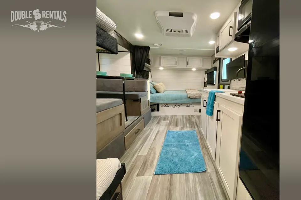 Please return camper broom-swept clean and free of any trash, food, and personal items. If you opted for bedding, please remove all bedding and place in the middle of the bed, and clean up any spills and splatters. We ask that you empty all waste water holding tanks before return, or we can do it for an additional fee.