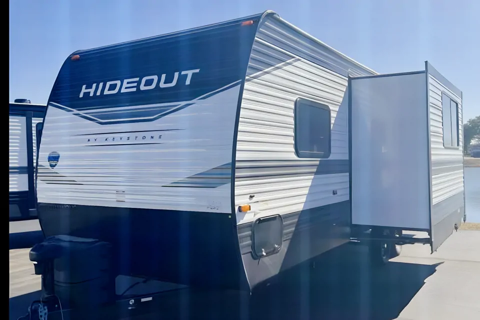 This is the PERFECT family camper for a weekend getaway or more! It is a BRAND NEW 30ft keystone hideout 250BH. It comes with many features and amenities: