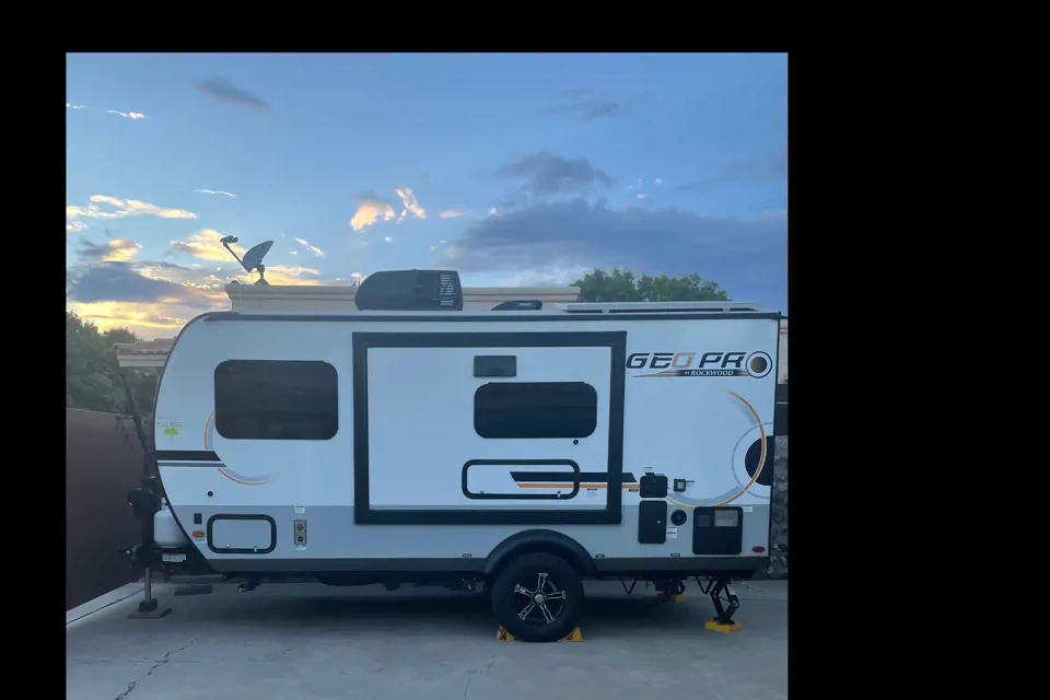 This unique Geo Pro BH16, is a class of its own with all the modern amenities. Included are interior/exterior speakers, a TV with remote and Prewired TV antenna, wifi capability and Bluetooth audio. Back up camera, solar panels, exterior bike racks, exterior night lights, 15 inch mud rover radials, and prewired Satellite. Included is a very nice bathroom with stainless steel sink, porcelain toilet, medicine mirror cabinet, and storage, included is a ceiling AC/Heater with thermostat, outdoor refrigerator, outdoor shower, outdoor griddle countertop and griddle. The U-Shape dinette converts into a queen size bed. It has two bunk beds with storage area for each one. With 2 12 volt batteries and 2 propane tanks, you can use the 3 burner stove and have hot water conveniently, includes a interior mid sized stainless steel electric/propane refrigerator with plenty of room for your goodies. It sleeps 4, even 5 using the queen bed; other amenities are rv toilet paper, coffee pot and coffee maker, bread toaster, RV broom/dust pan, trash cans, travel shampoo/conditioner, some pots n pan, some utensils, paper towels. You will enjoy hauling this quiet camper with all its amenities!!