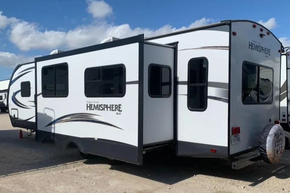 Load up your family and get ready to enjoy camping with this double slide out Salem Hemisphere GLX 272RL. This rig offers plenty of great features that everyone can enjoy, such as the fireplace, or theater seats, an island with a sink and high rise faucet. Want to enjoy some time outside? Enjoy it with some shade from the 21' electric awning and an outdoor kitchen area with a sink , grille and small refrigerator. There will be plenty ff storage space for all your camping gear outside and inside. Easy to clean wood linoleum floors. This unit also will be equipped with 2 tvs and a very big and comfortable mattress in the bedroom. Worried about not having enough space in the bedroom ? This trailer has plenty of walking space in the whole unit especially the bedroom. Plus an actual dresser and plenty of storage in the bedroom. The kitchen is equipped with a huge and deep sized stainless door refrigerator and freezer, a gas stove top with an exhaust fan above and a microwave. The trailer is a 50amp with 2 ac units. Water hookups and waste hookup. Surround sound inside and outside as well. 48 gal fresh water tank, 66 gallon grey water tank and a 30 gallon black water tank. Heating ,ac and plenty of windows if you want to just enjoy some outside air. When you want time away from home but still want the comforts of a home then this unit is for you. Also will come equipped with all your essential needs. Cooking ware. Eating utensils and plates and cups. Coffee pot, toaster. Bedsets will be available as well as pillows and fresh towels. All at no extra cost. You will love this trailer and I can't wait to hear from you!