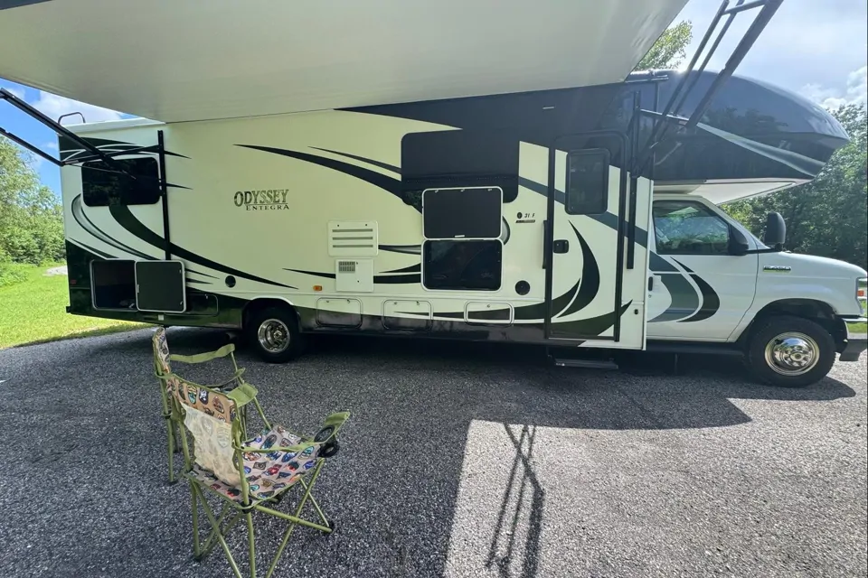 Your next adventure starts here! Phoenix is a fully equipped, family-friendly Class C motorhome designed to make your road trip smooth, cozy, and memorable. This spacious 2021 Entegra Coach Odyssey 31F features a full slide-out, private queen bedroom, bunk beds, over-cab bed, convertible dinette, jackknife sofa, and more — comfortably sleeping up to 10 people.