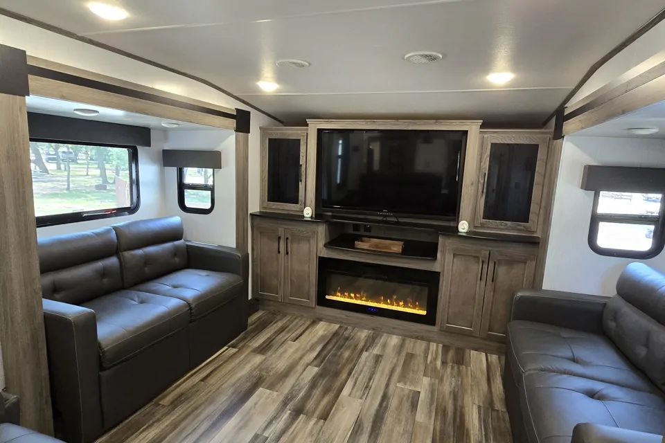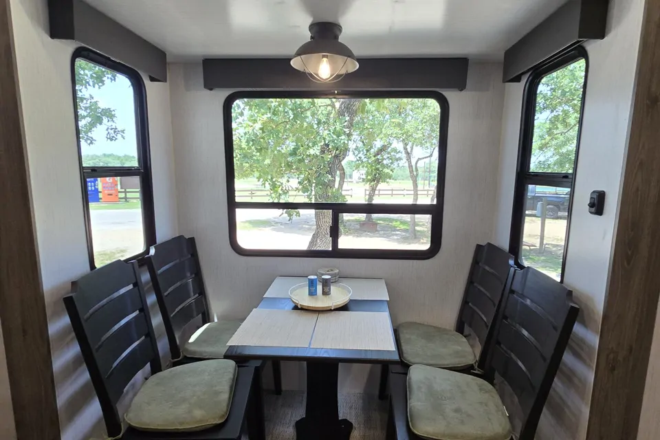 Our 2022 Heartland Milestone is a spacious one of a kind RV perfect for the family and friends! It offers all the basic amenities, BBQ grill, and outdoor chairs. Outside Bluetooth speakers.