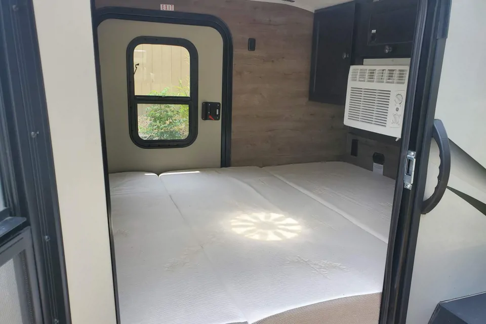 Easy towing little trailer giving you a comfortable space to lay your head. Equipped with an upgraded mattress, air conditioning, furnace, and outdoor kitchen.