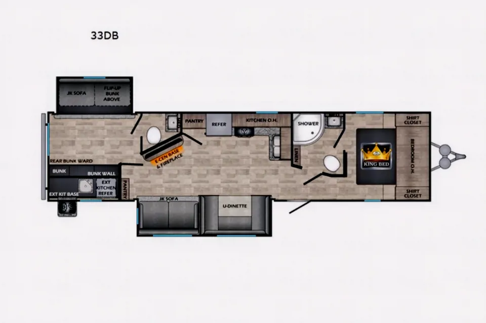 The perfect family friendly travel trailer! TVs in the living room, both bedrooms and the outdoor kitchen. This trailer has 1.5 bathrooms and plenty of storage. It has a 3 burner stove, small oven, microwave, indoor and outdoor sinks. The master bedroom has a king bed with a mattress topper, the second bedroom has a full, twin and couch that folds out as well as a half bathroom. This trailer will sleep 7 comfortably but can sleep up to 9. This camper is not for boondocking, you will need full hookups with a 50amp, send me a message with any questions!