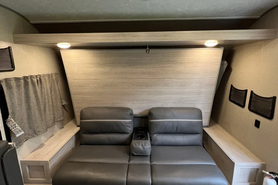 This travel trailer is a custom, professional conversion fully equipped with a Murphy bed, 2 bunk beds, Dinette which converts to a bed, sink, gas stove, microwave, ventilation, furnace, inside refrigerator. Tons of storage for all your adventure gear. Two 30 lbs propane tanks installed for prolonged adventure trips. Off road tires, Electric Jack for easy hitching & unhitching, Two 12 volts batteries for extra power connected to Solar penal. 44 Gallon fresh water tank, 30 gallons grey & 30 gallons black tank.
