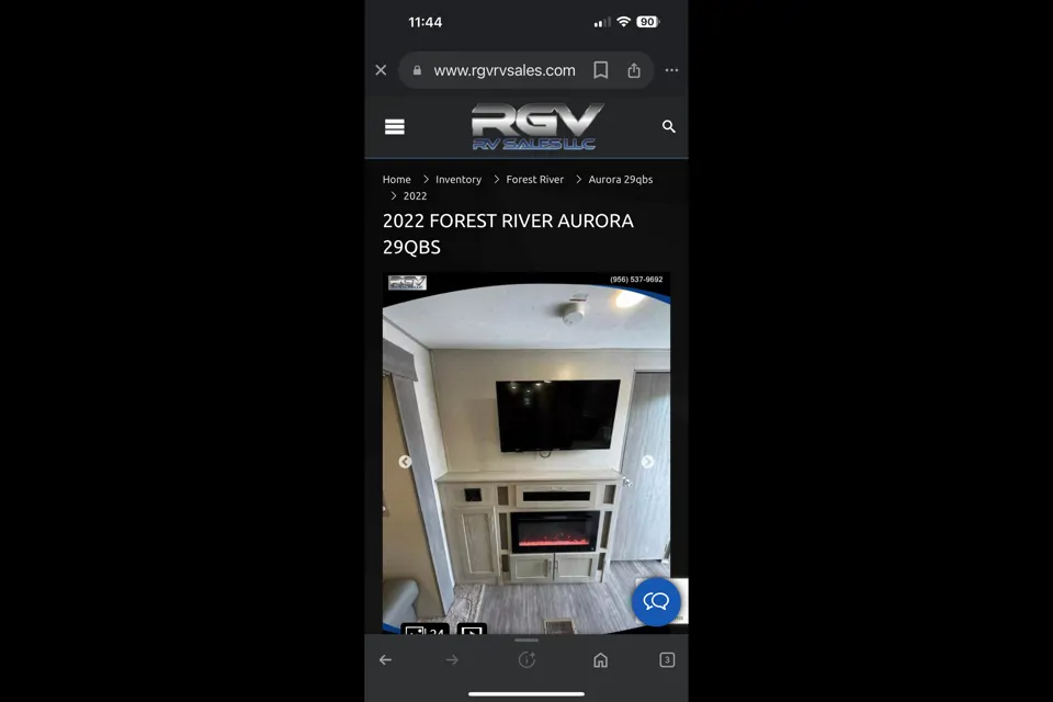 2022 Forest River Aurora 29QBS with slide-out, bunk room, private queen bedroom, full bath, modern kitchen, dinette, sofa, fireplace, TV, JBL audio, LED awning lights, and solar package. Spacious, family-ready!