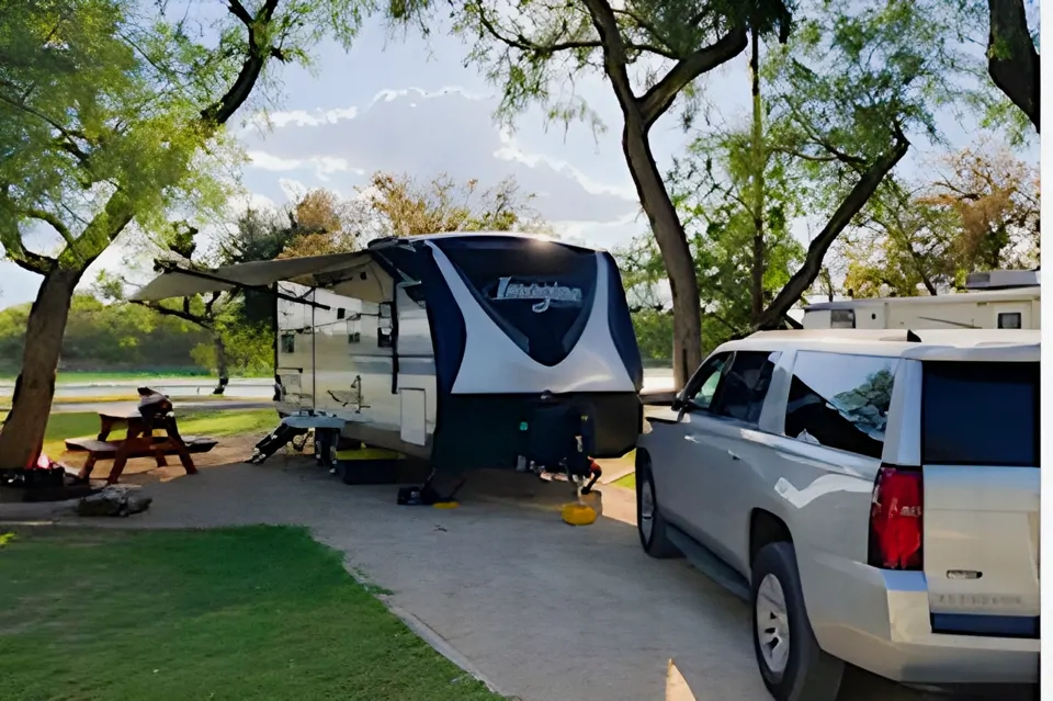 Brand new, comfortable, light weight, easy to tow. 5000lb. Towable with truck or full-size SUV. Bed is queen size (1), bunks are twin sizes (2), and the kitchen table and bench seats convert to a queen size bed. Cooking utensils, plates, cups, bowls are included. Unit has an outdoor kitchen and fridge. Towels, sheets and pillows are NOT included. Send me a message so I can try to accommodate your rental.