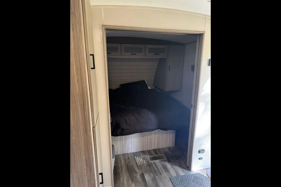 • A private queen bedroom up front for parents or couples seeking a cozy retreat