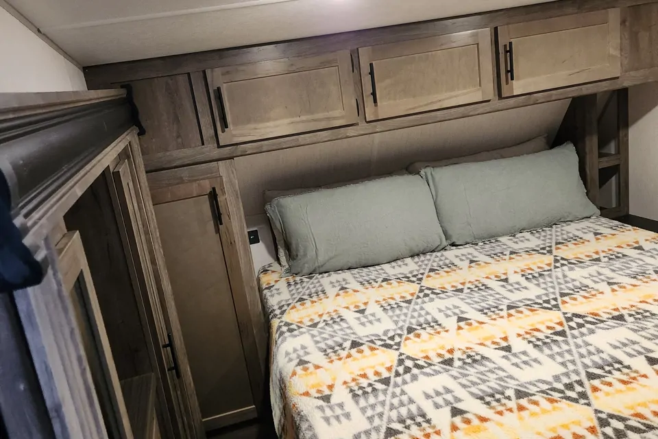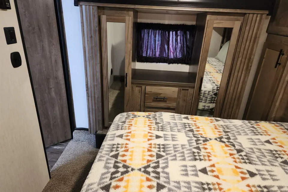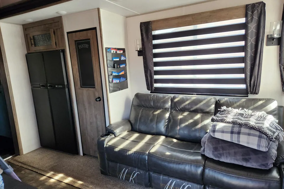 About the trailer: Let me start off by saying the pictures DO NOT do this trailer justice! The interior is beautiful and MUCH larger than the pictures look. I am 6'3" and could stand up comfortably in every room which is usually not the case in any trailer I have ever been in. The rear toy hauler section was enormous and had 2 very large and comfortable beds. The master suite bed was extremely comfortable and the linens were clean and very comfortable. The couch reclines and has heated and vibrating seats. The freezer and refrigerator were what I would expect in a small apartment, accomidating lare caserol trays and several large bags of ice in the freezer. The kitchen is open with lots of counterspace cutting boards, utensils even some spices and tinfoil. The exterior kitchenette had a small refrigerator as well that was perfect for a few drinks and snacks while we hung outside with family under the two built in awnings. The full bath in the front is LARGE for a trailer and the shower was large enough to take a comfortable shower without having to touch the sides with an adult sized toilet, sink and mirror. Two people could comfortably occupy the restroom at the same time. AND there was a second half bath in the rear toyhauler space. I genuinely can't say enough good things about the accommodations and Morgan as the host.