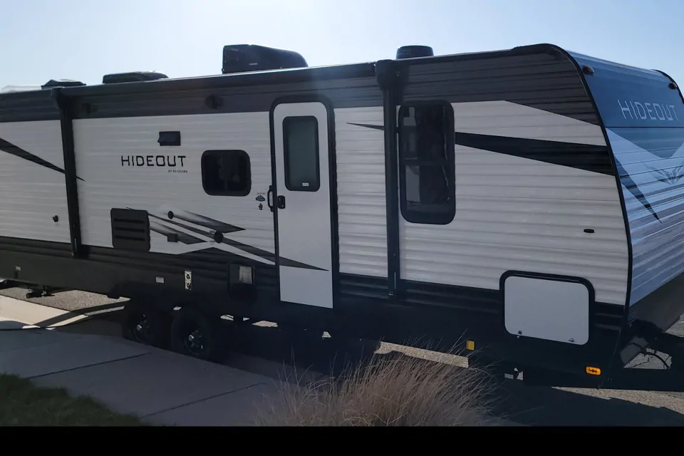 2021 Keystone Hideout 26 foot trailer. One pop out. Sleeps 10 if you're willing to get cozy. 5 total beds: one queen, 2 full bunks, fold out couch and fold out dinette. Full bath with toilet and small tub/ stand up shower. Unlimited generator use available. Propane grill included with rental. Several add-ons available to complete your trip. I know several great spots up on Cedar Mountain. Contact me and I can have trailer delivered and set up in a beautiful location. All you have to do is bring your food and necessities to enjoy a great outdoor experience. Let me take care of the dirty work, while you enjoy your trip! Delivery to Jellystone or Quail Creek is free. Longer delivery available. Please ask about our military, first responder, and LEO discount.