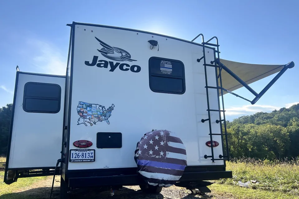 This adorable and modern camper has one pop out and an automatic awning. There is one bedroom with a sliding door, that features a queen bed with a memory foam mattress topper. The bedroom has lots of storage, as well as its own TV. The dining room table converts to a small bed, and both beds have linens and pillows provided. The kitchen is equipped with a refrigerator, freezer, microwave, stovetop, oven, and sink and is stocked with all essential dishes, utensils, and cookware. The living room has two recliners, a TV, dog toys and a few books and games! There is a spacious pantry by the door with a few basic spices and oils, and cleaning supplies. The bathroom has storage, a sink with a large counter space, and a nice sized shower. We include towels, a few toiletries, and RV toilet paper. Outdoors you’ll find a mini fridge, blackstone grill, and a couple camping chairs. There is a speaker system that connects to bluetooth and plays indoors as well as outdoors. There is also an outside shower for rinsing off mud or sand.