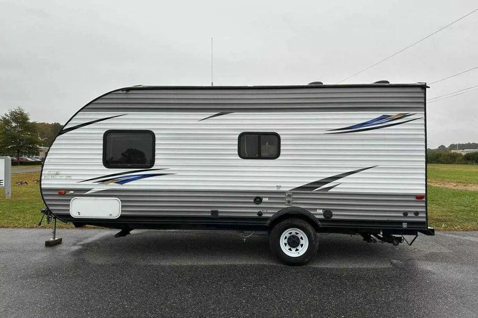 A perfect trailer for a first time campers! Compact but has all the necessary amenities! Comfortable Quinn size bed, a bunk bed over it and extra space at the dinanette. Has a 2 burner stove, a sink, mini fridge and a microwave. For more information contact Rent RV Experience