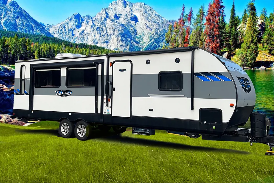 Spacious and Pristine: The 2021 Forest River Salem is designed with your comfort in mind, offering ample room for relaxation and recreation. This dual slideout floorplan features a HUGE living area and a kitchen sink island.