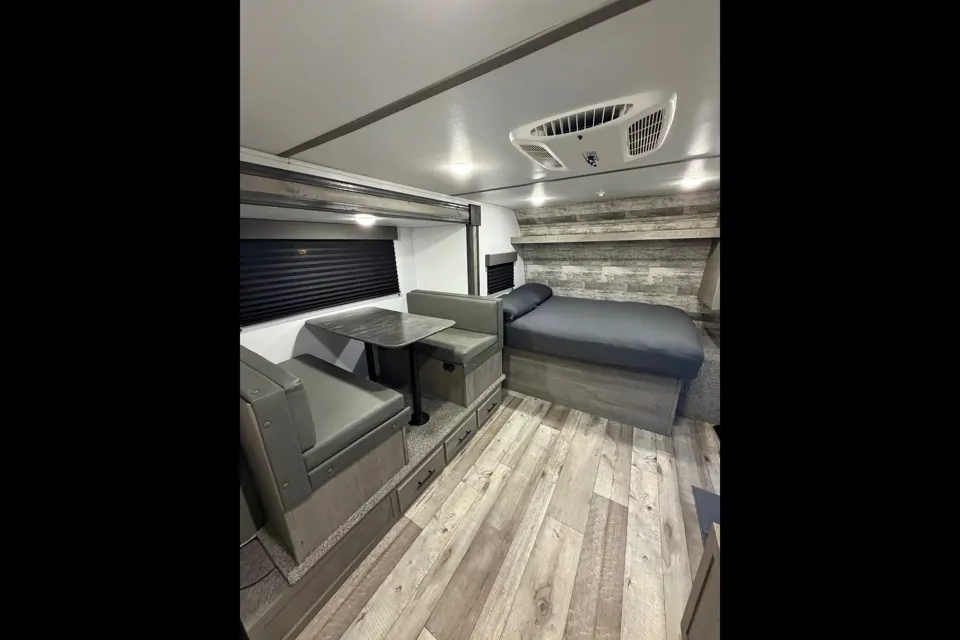 This lightweight travel trailer is simple to tow and packed with everything you need for a comfortable trip. It comfortably sleeps up to 5 people with a full size bed, bunk beds and a convertible dinette-perfect for family and tailgaters.