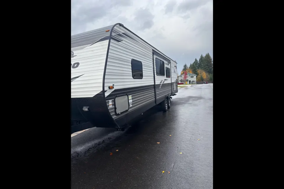 Like new, Jayco Travel Trailer. Perfect for long term rentals with families. This trailer will has solar panels, outdoor and indoor sound system. Outdoor refrigerator with an outdoor gas line as well.