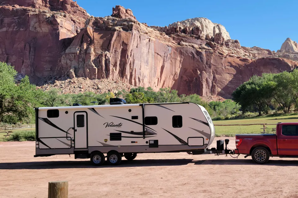 28 ft travel trailer, sleeps up to 10. Features fireplace and nice size bathroom. The trailer is well maintained and has given us many fond memories in it. No pets and cleaned thoroughly after every use.