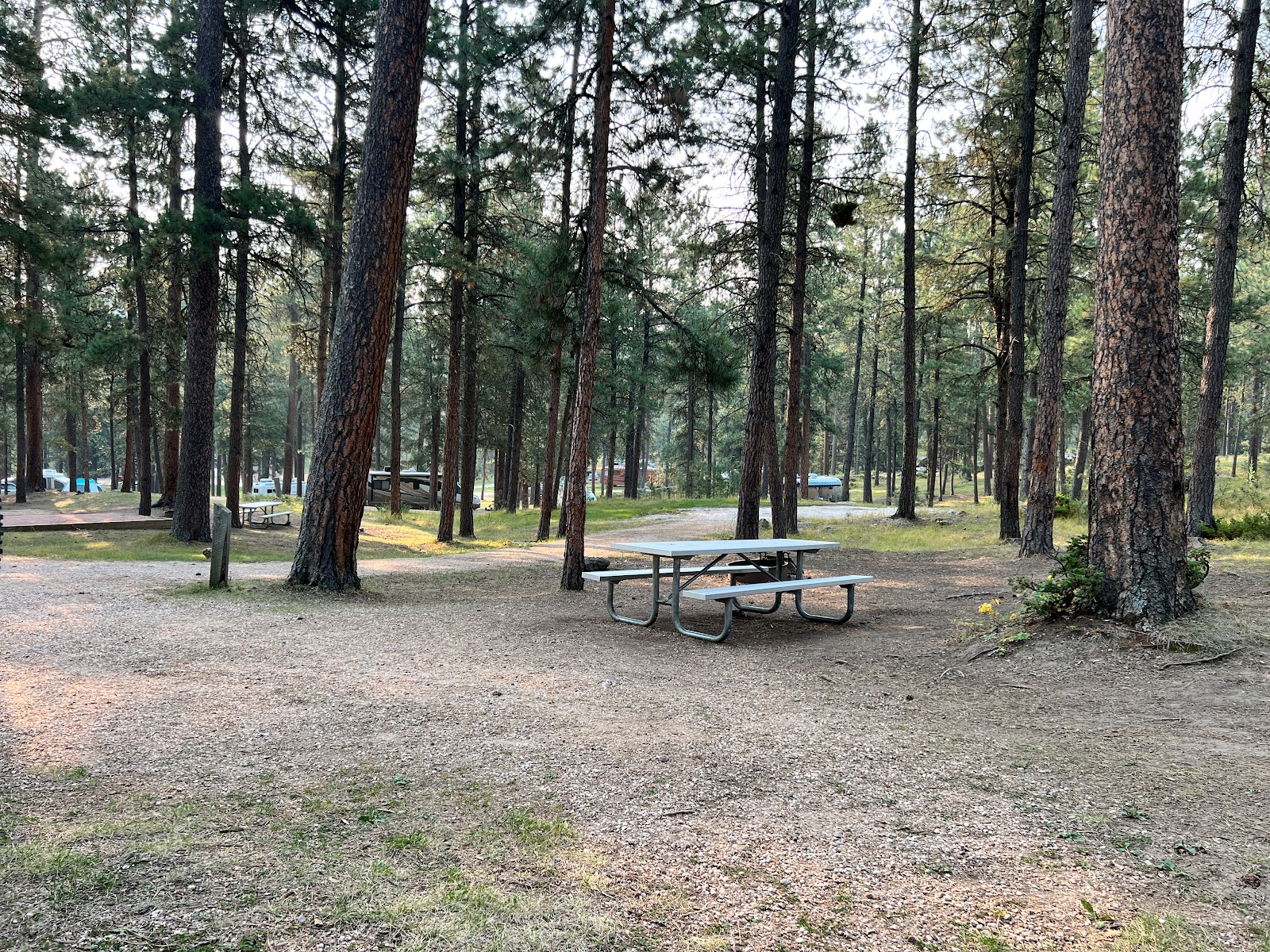 Le terrain de camping propose tous les services pour VR, dont des branchements électriques 30 ampères, de l’eau, des douches chaudes, des toilettes à chasse d’eau et des tables de pique-nique. Les emplacements acceptent les animaux de compagnie, et des grils sont à disposition pour cuisiner à l’extérieur. Des sentiers bien entretenus invitent à la randonnée et à l’observation de la nature, tandis que l’accès à la pêche permet de profiter des eaux claires des montagnes. La célèbre route panoramique Wildlife Loop permet d’observer bisons, orignaux et autres animaux sauvages emblématiques des Black Hills, sans quitter votre véhicule.