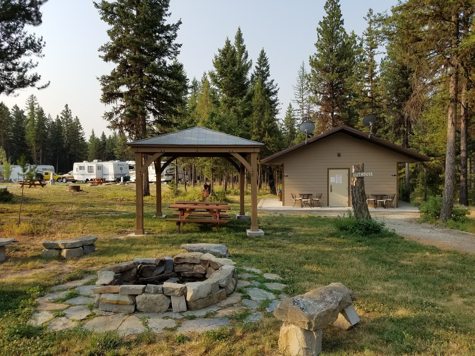 Les campeurs bénéficient de commodités modernes telles que buanderie, douches chaudes et connexion Internet fiable. On y trouve aussi une station de vidange pour un entretien facile des VR, ainsi que du bois à brûler pour agrémenter vos soirées autour du feu. Situé dans le nord-ouest du Montana, ce terrain de camping est une porte d’entrée vers les attraits naturels et les zones récréatives de la région.