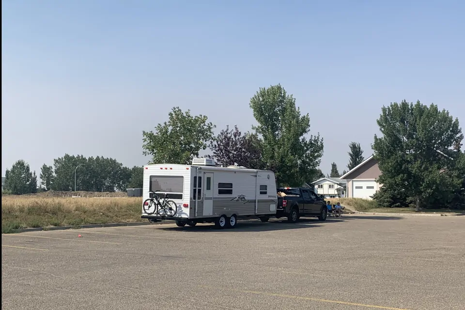 It has Queen bed, overhead closet, side closet, under bed storage, tub/shower,toilet, Refrigerator,pantry, overhead cabinet, microwave, sink, dinette, overhead cabinet,sofa bed, overhead cabinet, tv shelf, Ward, air condition, heater, outside shower, storage. Huge window back of trailer to view outside…