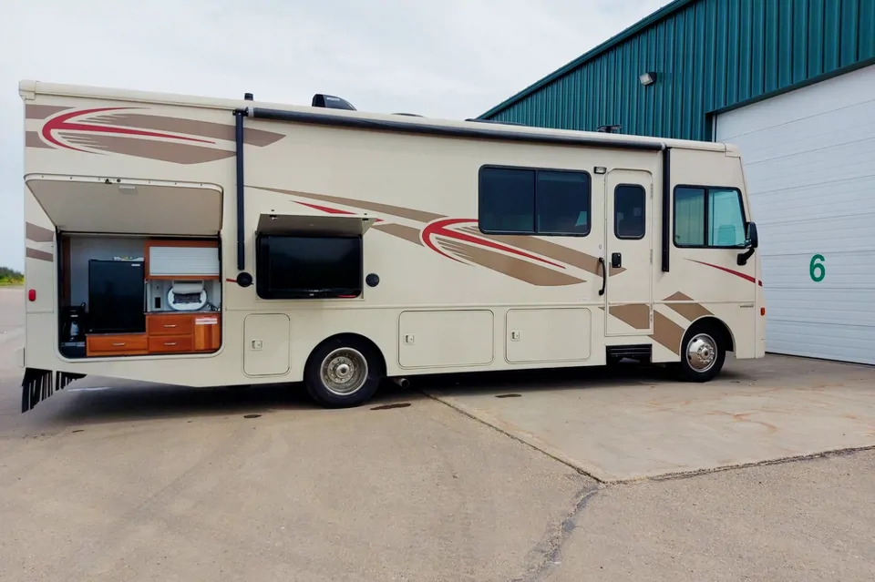 Clean non smoking well kept 29foot motorhome with 1 full length slideout. Sleeps 7 has a full bathroom with nice size shower.Kitchen has oven,microwave,fridge with freezer and lots of cupboard space.The unit has lots of storage inside and out. There are 3 tvs, 1 outside and 2 inside. There is an outdoor kitchen with a sink and mini fridge.
