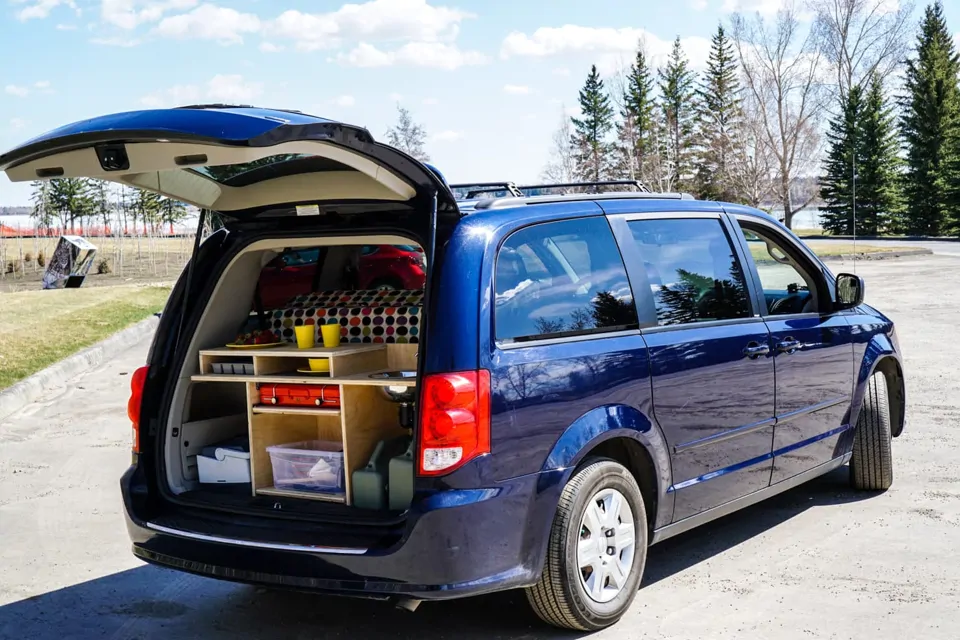 Smile Campervans are custom remade Dodge Grand Caravans maximally utilizing space behind the front seats.