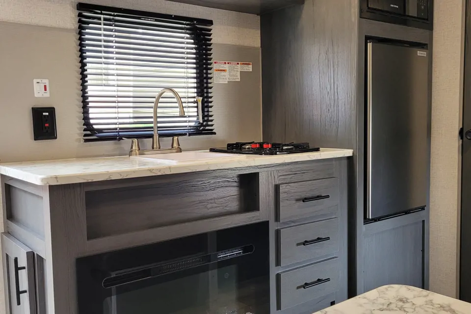 Awesome little trailer. Great for a small family or a couple. Light weight and easy to pull by an SUV. Sleeps up to a maximum of 6 person and has all the amenities including stove, fridge, electric fire place, power awning, and bluetooth stereo. Full Kitchen and cleaning set included.